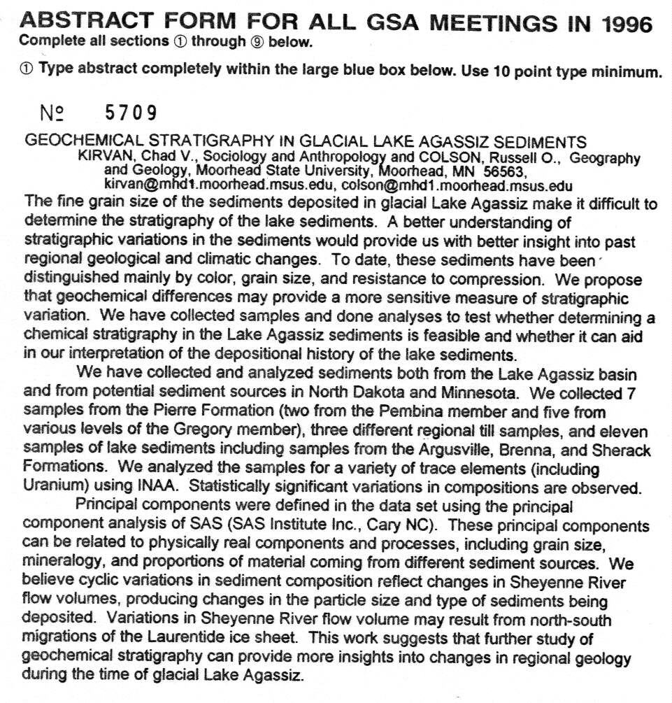 1996, Geochemical stratigraphy in glacial Lake Agassiz sediments
